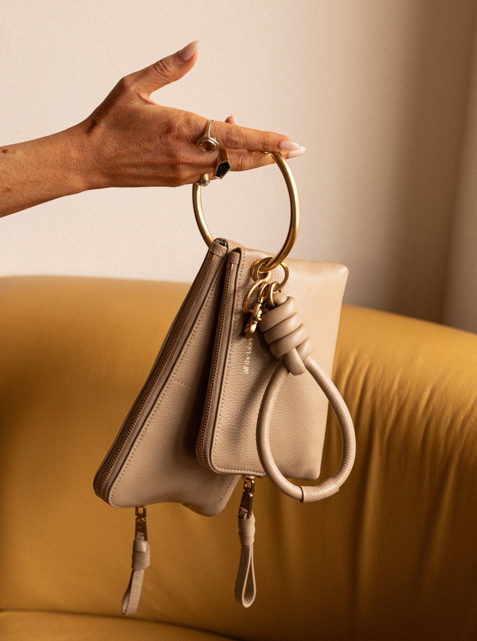 Alongside the custom-printed leather pouch, we've created a limited edition Eucalypt colourway of best-selling accessories the Luxe Knot Key Ring and the Luxe Elsie Wallet to create statement Carabiner Capsule. We're also introducing a brand new design, the Luxe Petite Lilian. She's the ideal grab-and-go handbag for your everyday essentials.