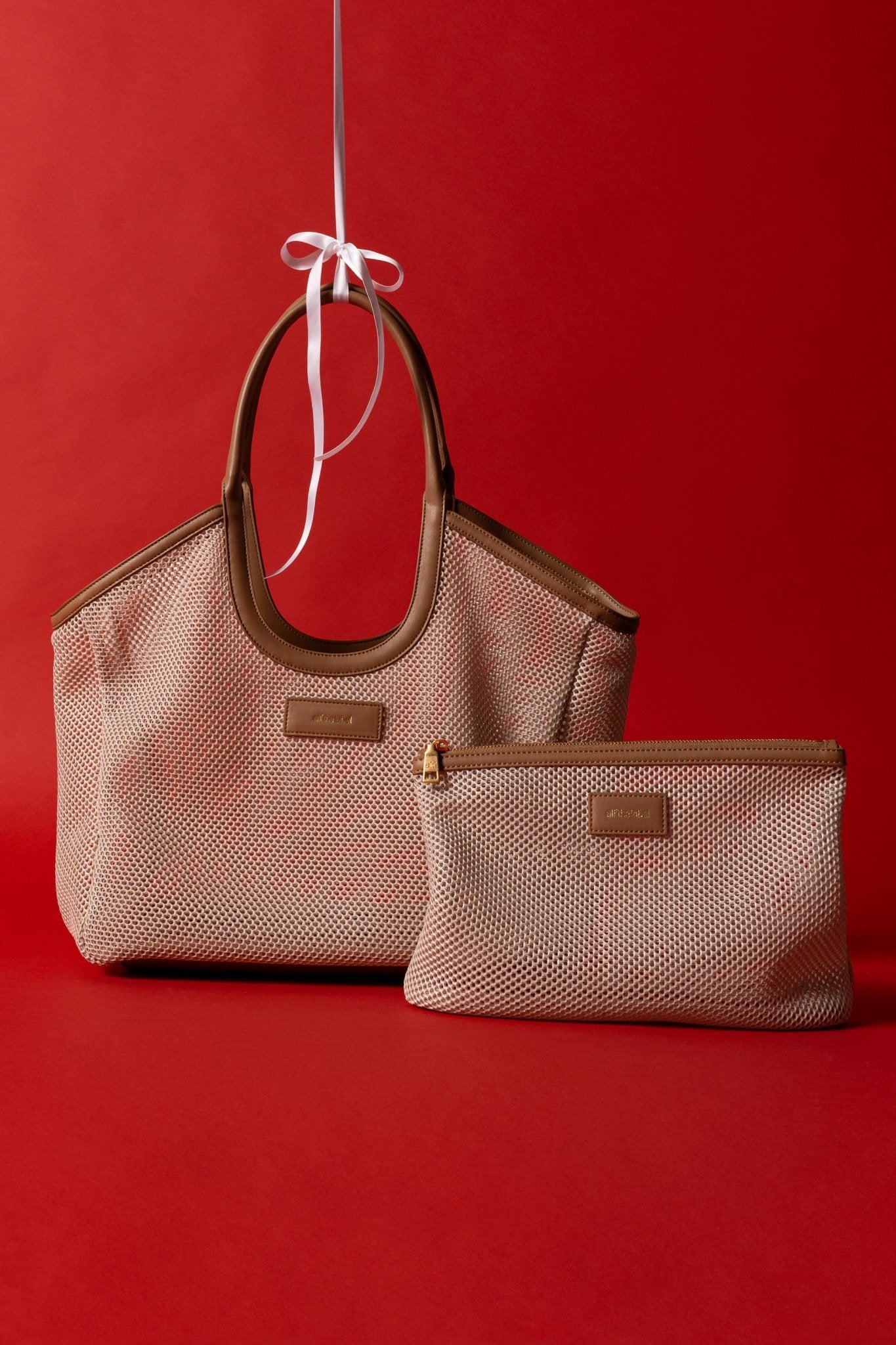 Handcrafted in durable lightweight mesh, our sell-out Amy Tote pairs perfectly with the matching Grande Pouch, creating an organised grab-and-go system for your busy lifestyle.