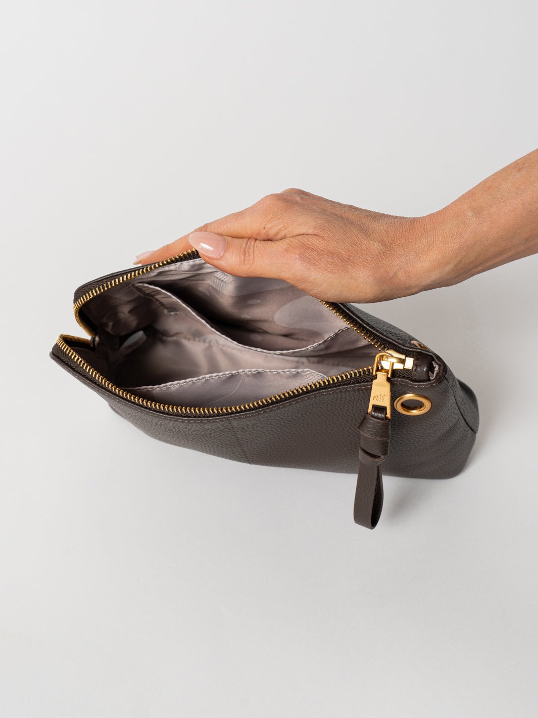 Designed for maximum organisation with minimal fuss, our premium leather pouch is a versatile must-have, and a key piece for your Carabiner Capsule. Use it as a chic clutch or an effortless organiser within a larger bag allowing for swift, stylish transitions.