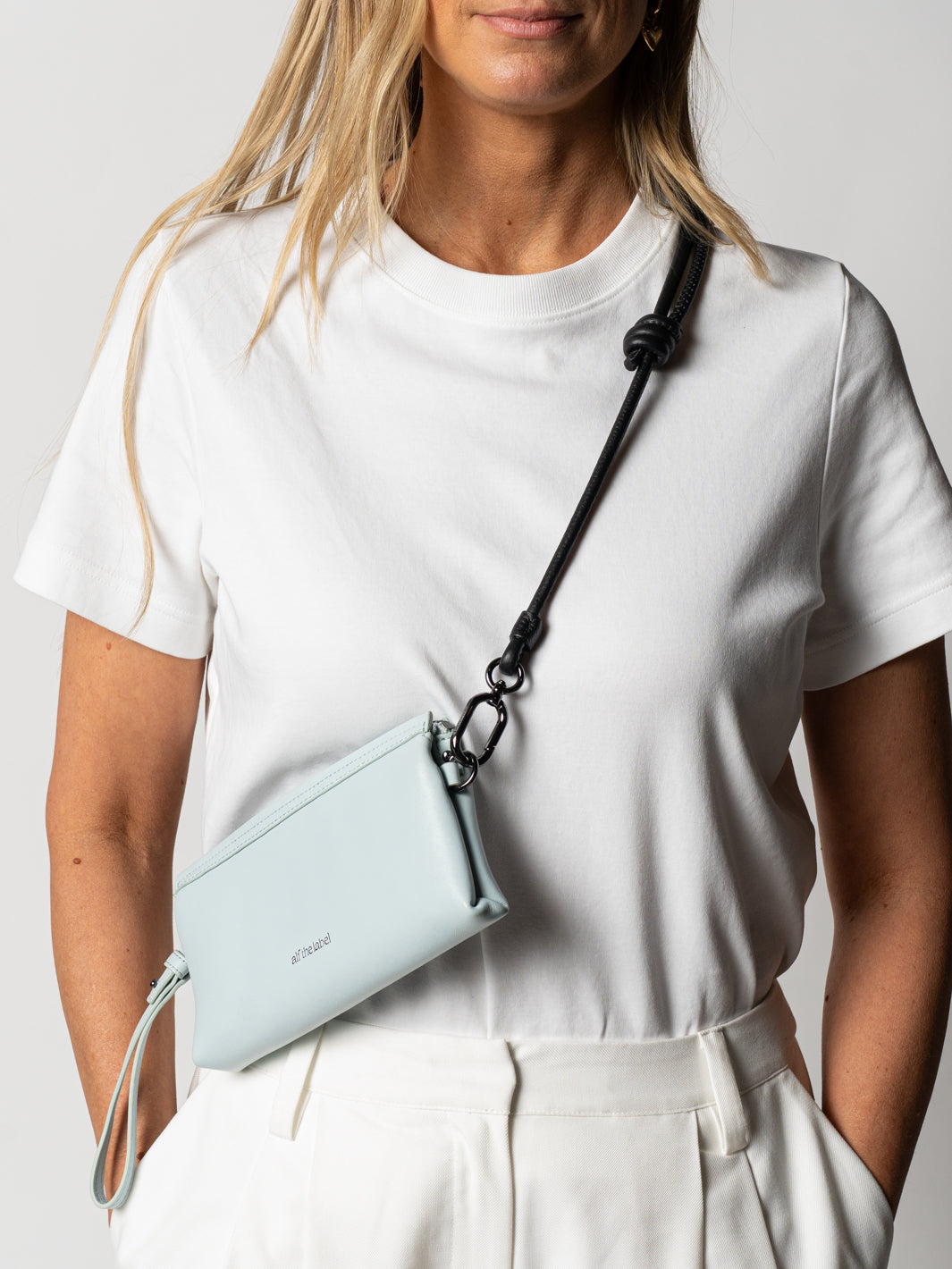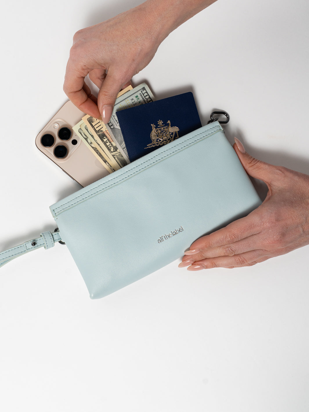 Your essential travel companion. Designed for effortless journeys at home and abroad, the Anita Pouch fits your passport, phone, cards, and cash in one sleek, organised place. Its slimline design ensures everything is within easy reach at check-in counters and security lines, making your travel experience smoother. Use it as a minimalist clutch with its included wristlet, or add a Knot Bag Strap (sold separately) to its two external D-rings to instantly transform it into a hands-free crossbody or shoulder bag.