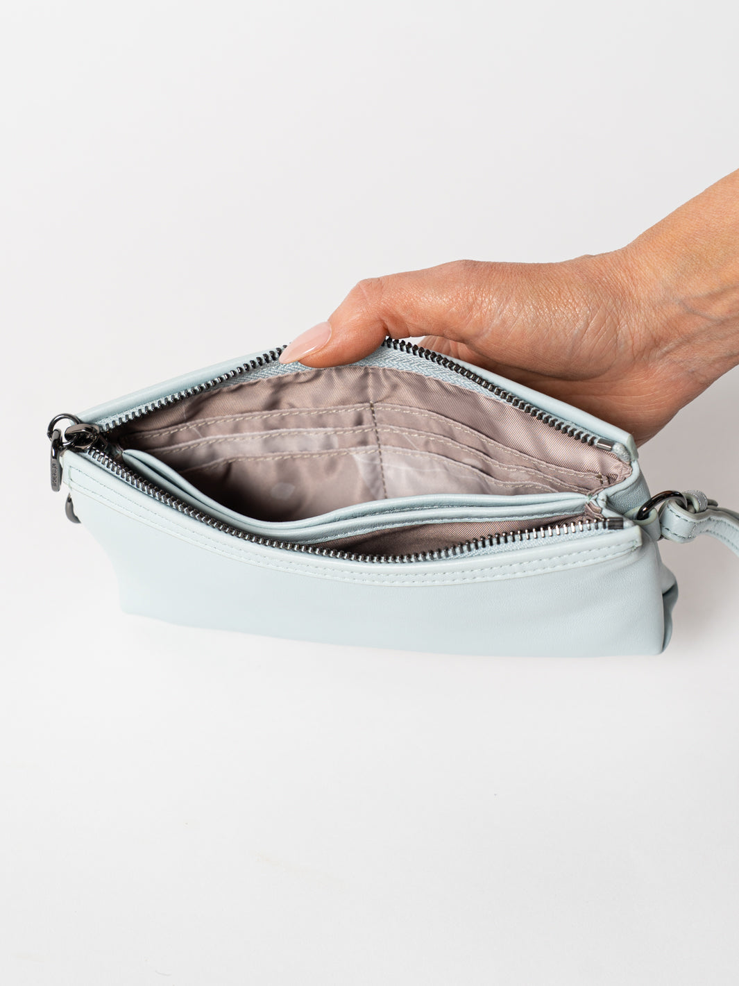 Designed for seamless organisation. Crafted from our soft, premium Nappa leather, this pouch is as functional as it is beautiful. The interior features a built-in wallet with six card slots, a convenient centre pouch for cash, and a zipped pocket to securely hold coins or small valuables. Our custom waterproof lining and light interior provide peace of mind and easy visibility, ensuring you can find everything you need at a glance.