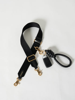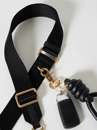 The strap features a front D-ring to conveniently clip your keys, wallet or sanitiser pouch to the exterior of the strap for easy-to-grab use.