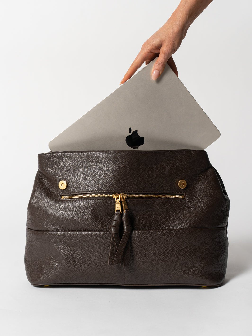 Crafted for sophistication and durability. Made from premium pebbled leather that’s both luxurious and long-lasting, the Signature Ari is available in elegant brushed gold or gunmetal hardware. Its exterior is designed with functionality in mind, featuring a top handle, two front pockets, and a front zipped pocket discreetly hidden under a magnetised flap.